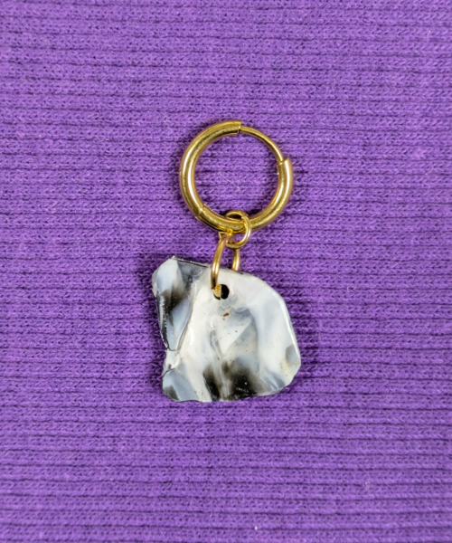 Chaque boucles d’oreilles est unique, les détails, la couleur, la texture varient selon la plaque. Vendue à l'unité.