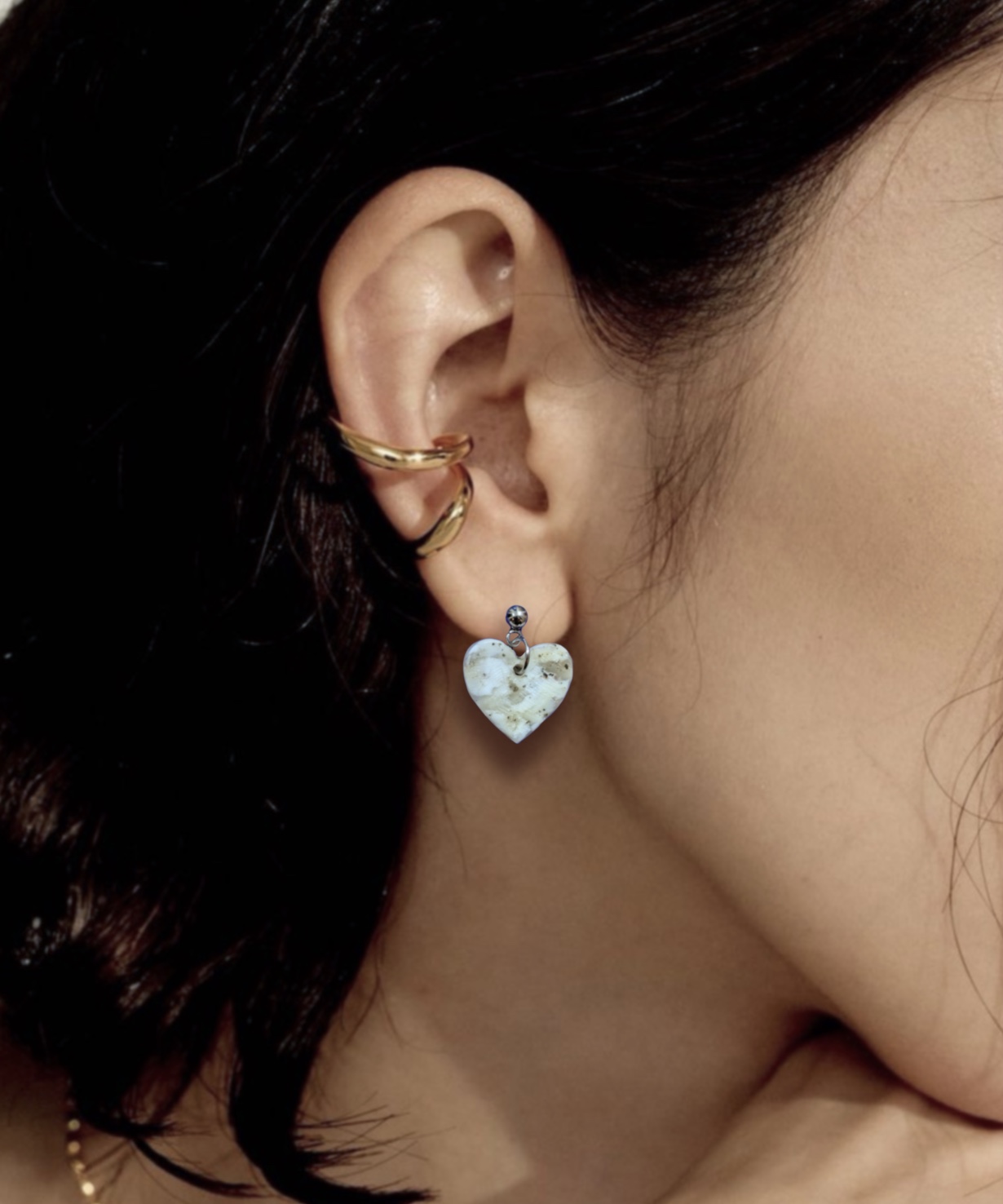Chaque boucles d’oreilles est unique, les détails, la couleur, la texture varient selon la plaque.