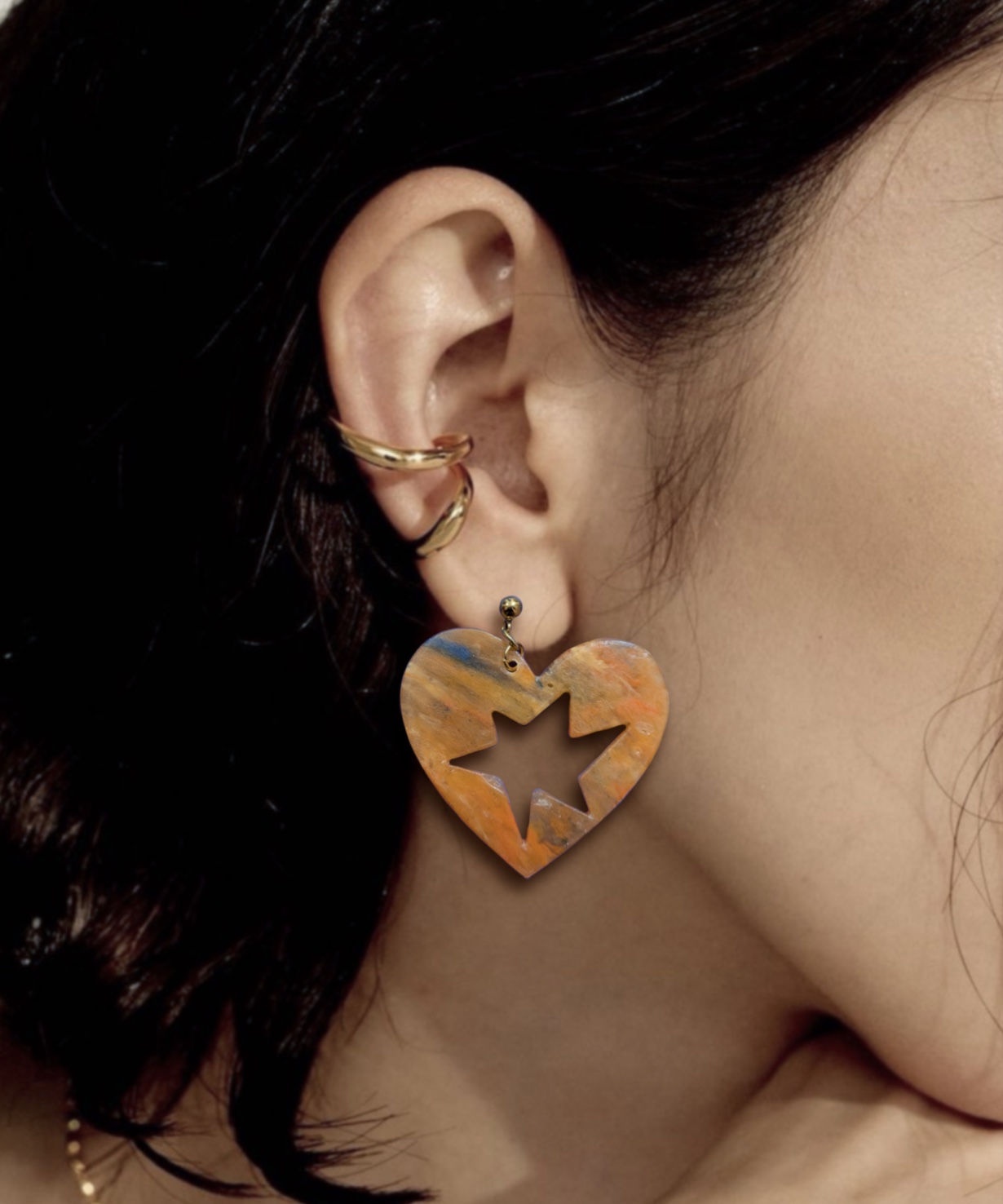 Chaque boucles d’oreilles est unique, les détails, la couleur, la texture varient selon la plaque.