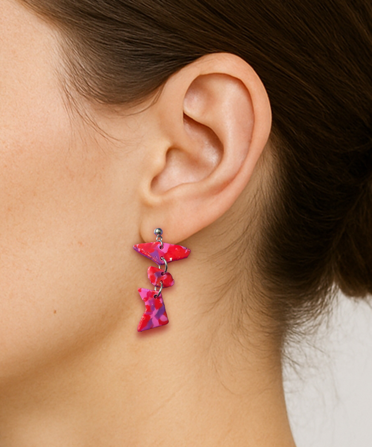 Chaque boucles d’oreilles est unique, les détails, la couleur, la texture varient selon la plaque.