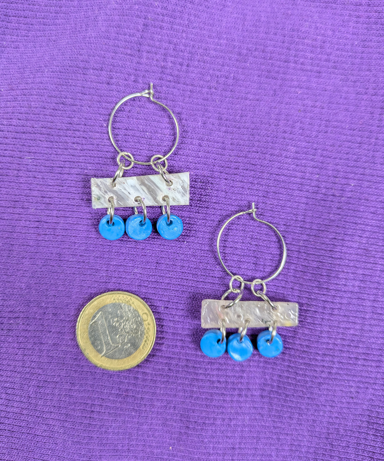 Chaque boucles d’oreilles est unique, les détails, la couleur, la texture varient selon la plaque.